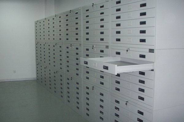 底图密集架又称图纸柜:用来放置图纸用的铁制抽屉柜;按标 准A型图纸大小一般可分类为0号底图柜;1号底图柜;2号底图柜等,柜体采用抽屉式结构,一般采用1.0mm以上的铁板生产制做。 底图柜采用设有特别导轨的滚轮式结构抽屉,存取灵活方便,帛屉拉出时能始终保持水平状态,适用各类型底图平放。